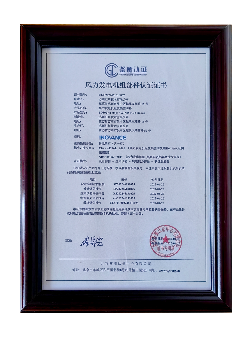 匯川技術(shù)榮獲“風(fēng)力發(fā)電機(jī)組部件認(rèn)證證書”